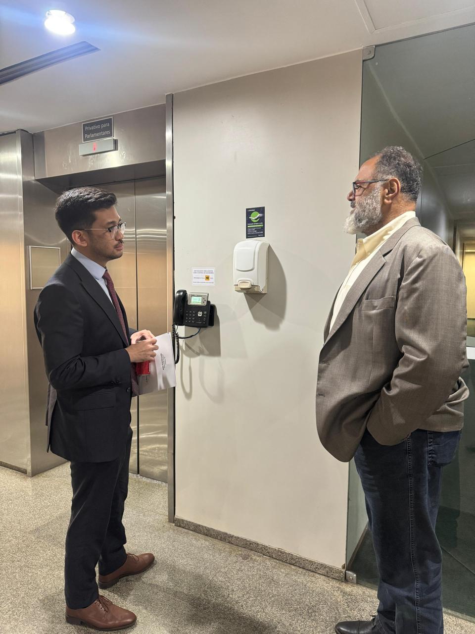 Na sequência, tivemos uma breve, mas produtiva conversa com o deputado Kim Kataguiri (UNIÃO/SP), autor do PDL 844/2025, que propõe sustar a Resolução CCFGTS nº 1.130/2025. Mesmo a caminho de um compromisso na CPMI do INSS, o parlamentar ouviu as ponderações do setor, reiterou seu compromisso com a pauta e destacou a importância do apoio das entidades e empresas na articulação com parlamentares em seus estados, de modo a fortalecer o debate dentro da Casa.