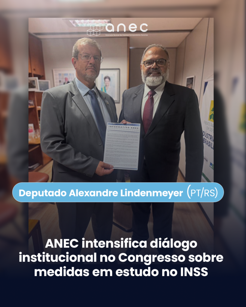 Nos encontros, a ANEC apresentou preocupações relacionadas às medidas em estudo no Instituto Nacional do Seguro Social, especialmente quanto à elaboração de uma possível instrução normativa que prevê a criação de um portal de contratação conectando bancos diretamente aos clientes, com a exclusão do correspondente bancário da transação.