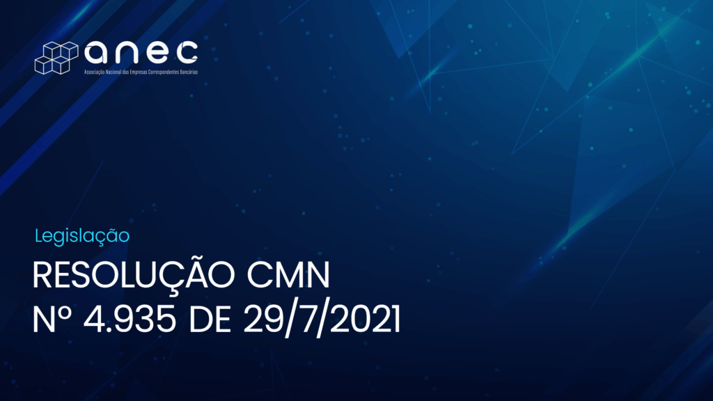 RESOLUÇÃO CMN Nº 4.935, DE 29 DE JULHO DE 2021 Dispõe sobre a contratação de correspondentes no País pelas instituições financeiras e pelas demais instituições autorizadas a funcionar pelo Banco Central do Brasil. O Banco Central do Brasil, na forma do art. 9º da Lei nº 4.595, de 31 de dezembro de 1964, torna público que […]
